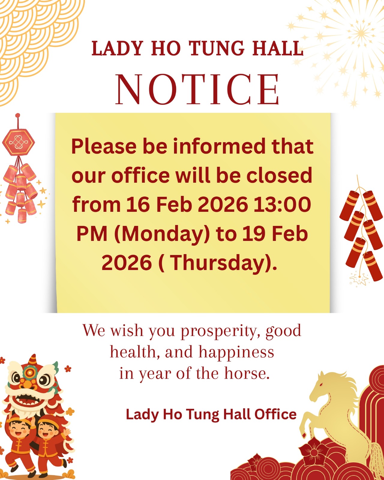 Notice Gallery Notice Uncategorized Notice Please be informed that our office will be closed from [...] Zhang Anni2026-02-12T22:52:42+08:00February 12th, 2026|Categories: Uncategorized| Read More