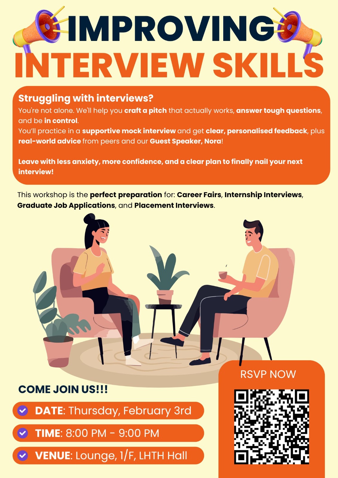 You’ll practice in a supportive mock interview and get clear, personalised feedback, plus real-world advice from peers and our Guest Speaker, Nora!