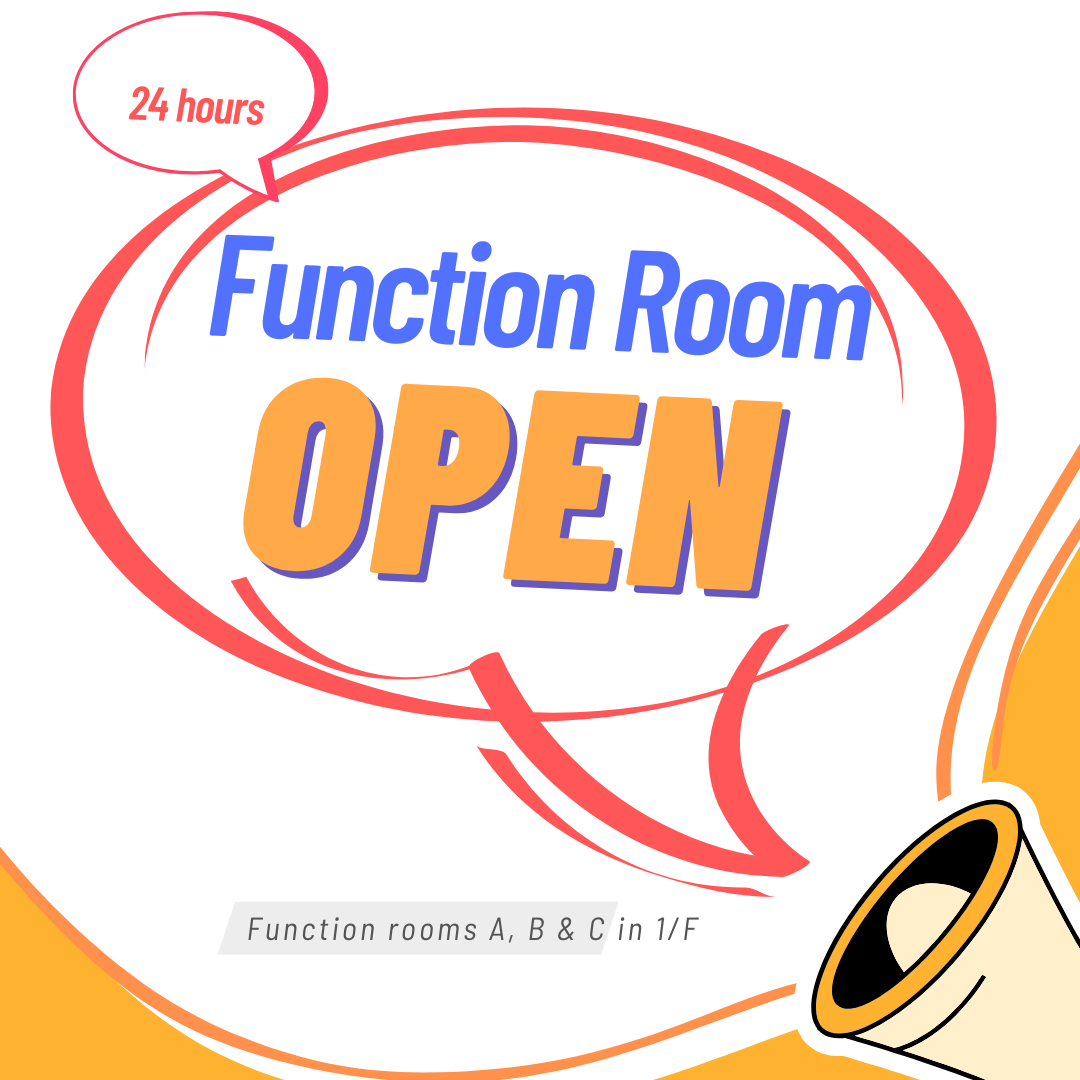 Function rooms A, B & C in 1/F will be open for revision during the examination period. Students can access the room at any time without booking.